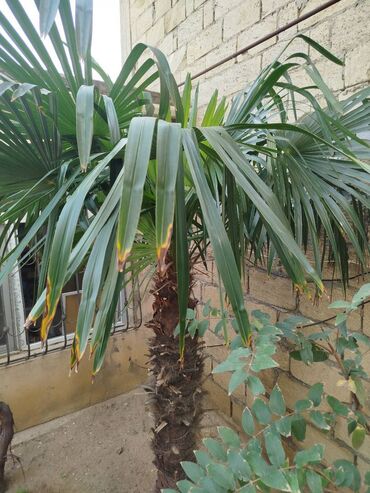 Bu palma ağacı qalın, qəhvəyi gövdəsi və geniş, tünd yaşıl yarpaqları