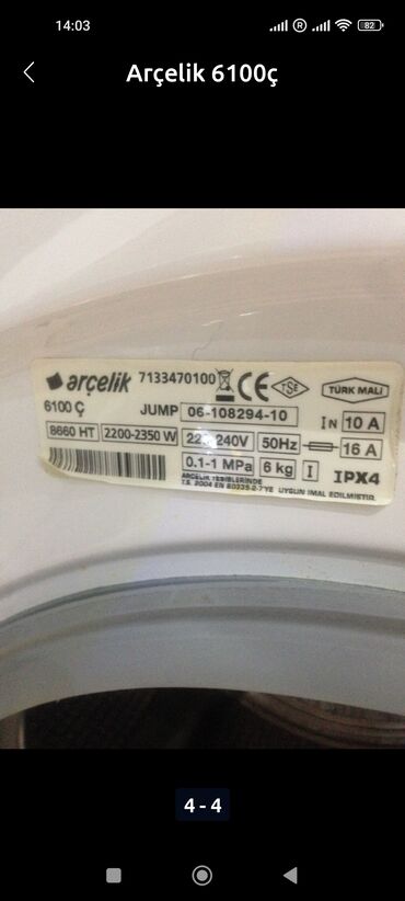 Paltaryuyan maşın 6 kq, Təmirə ehtiyacı var, Avtomat, Qurutmasız, Kredit yoxdur, Ünvandan götürmə