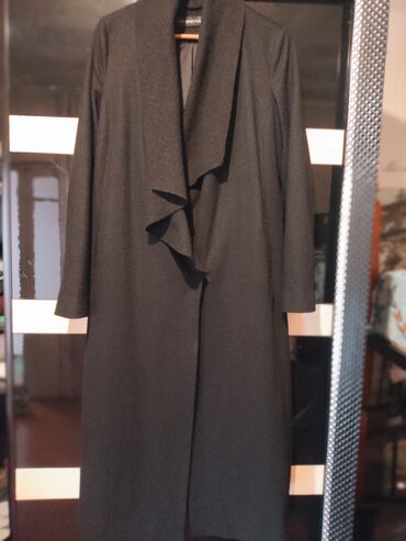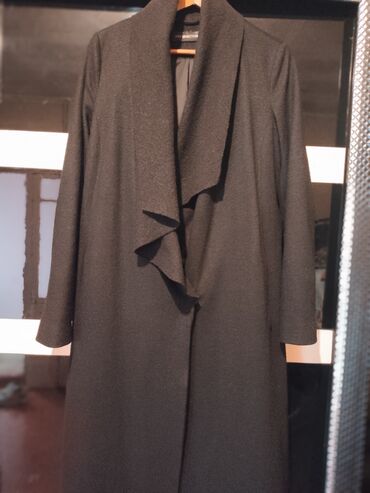 Qadın uzun palto – qara rəng Boynu temiz karakul 190 manat 38 razmer Ici astarsizdir - Dizayn: Asimmetrik ön hissə; bir tərəf hamar parça, digər tərəf isə teksturalı, parıltılı materialla işlənib...