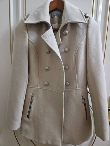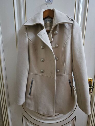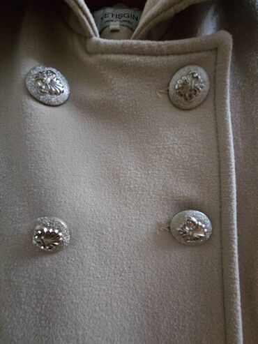 Bej rəngli qadın paltosu - Qısa model, iki tərəfli düyməli ön hissə. 1 ce defe geynilib ela veziyyetdedir. - Yumşaq parça, iç hissəsi atlas örtüklü - Geniş yaxalıq - Öndə iki ədəd yan cib - Çıxarı...