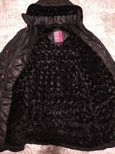 Qadın uzun palto – qara rəng Boynu temiz karakul 190 manat 38 razmer Ici astarsizdir - Dizayn: Asimmetrik ön hissə; bir tərəf hamar parça, digər tərəf isə teksturalı, parıltılı materialla işlənib...