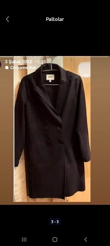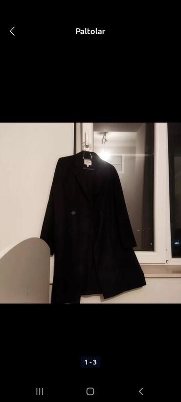 Qadın uzun palto – qara rəng Boynu temiz karakul 190 manat 38 razmer Ici astarsizdir - Dizayn: Asimmetrik ön hissə; bir tərəf hamar parça, digər tərəf isə teksturalı, parıltılı materialla işlənib...