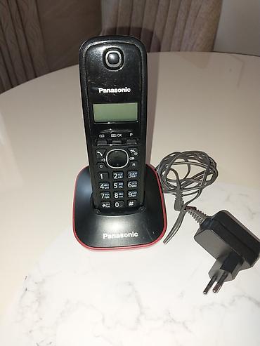 Panasonic simsiz ev telefonu və baza stansiyası - Brend/model: Panasonic DECT simsiz telefon - Rəng: qara boru, qırmızı şarj/baza stansiyası - Ekran: kiçik LCD göstərici (zəng və menyu məlumatları...
