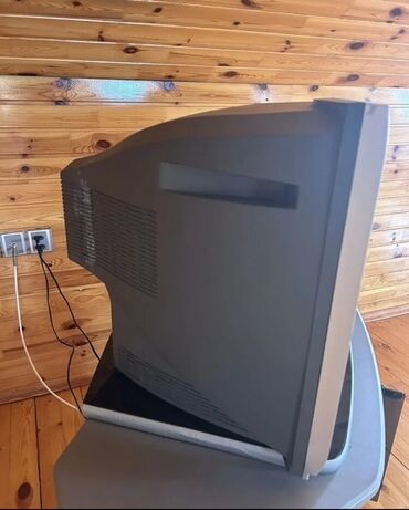 Kompakt kineskop (CRT) televizor - Ekran: təxminən 21–25 düym diaqonal, düz ön panel - Korpus rəngi: gümüşü/boz - Üst hissədə havalandırma ızgaraları, arxa tərəfdə çıxıntılı kineskop - Ön paneldə ...