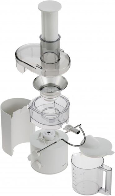 EndirimsizPanasonic MJ-CB100WTQ şirəçəkəni 1000 vatt güc və iki sürət ayarı sayəsində şirələrin hazırlanmasında rahatlıq və sürət təmin edir. 75 mm diametrli böyük yükləmə dəliyi, meyvə və tərəvəzləri əvvəlcədən doğramadan istifadə etməyə imkan verir. Model, şirələri fasiləsiz hazırlamaq üçün 1,5 litrlik xarici rezervuara birbaşa axın funksiyası ilə təchiz olunub. Pulpa avtomatik olaraq ayrı bir konteynerdə toplanır ki, bu da cihazın təmizlənməsini asanlaşdırır. Ağ plastik korpus və kompakt ölçülər (eni 20.8 sm, dərinliyi 30.4 sm və hündürlüyü 38.6 sm) şirəçəkəni hər hansı bir mətbəx interyerinə uyğun edir. Cihazın çəkisi 3.6 kq-dır. Şirəçəkən Çin istehsalıdır və istismar təlimatı ilə birlikdə təchiz edilir.