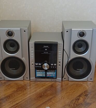 Dəst: əsas blok və iki 2-yollu ön akustik sütun (Panasonic). Ev kino/partilər üçün güclü səs və geniş funksionallıq.