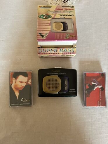 Panasound WM-610SP Mini Stereo Kaset Pleyer - Model: WM-610SP (Super Bass, Hi-Fi Sound System) - Üstündə qutu və təlimatlar görünür - Daxili dinamik: musiqini qulaqlıq olmadan dinləmək üçün - Ster...