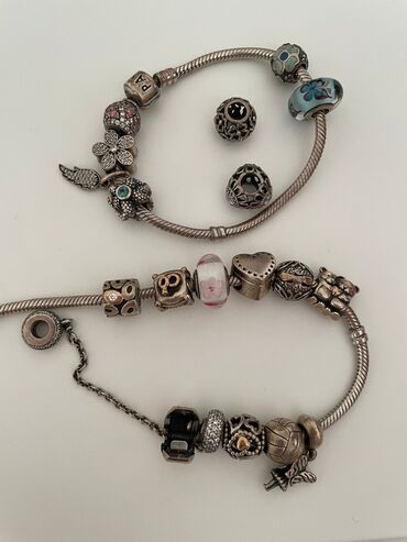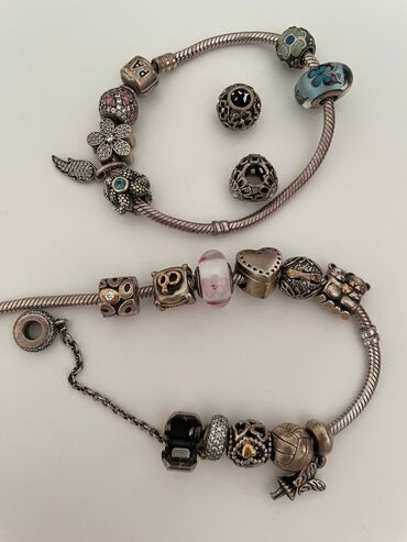 Ikisidə doğurçu gümüşdü. ikisidə 925 probadı şəkillərdə görünür xaiş edirəm diqqətlə baxın şəkillərə. Pandoranı gümüş suyunda yumaq lazımdır rəngi qaralıb. Pandora olan originaldır 160 manata alını...