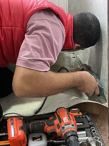 - Şəkillərdə peşəkar alətlərlə divar montajı və boru çıxarışı prosesi göstərilir; standart mis, polipropilen və ya metal-plastik xətlərlə uyğun qoşulma mümkündür.