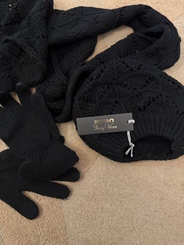 Шапка вязаная с узким шарфиком. Новая. Цена 5 манатов.