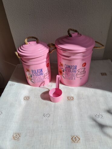 Paraşok saxlamaq üçün dəmir qablar. Az işlənib. Yeni kimidir. Çox gözəl qablardır. Həm hava çəkməməsi həm paraşokun qoxusunun ətrafa yayılmaması üçün sağlamlıq baxımından ən yaxşı qablardır.