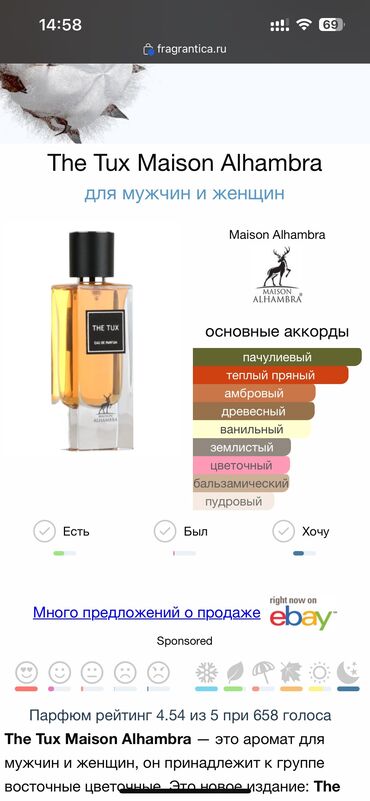 Maison Alhambra The Tux. Арабский клон парфюма Ysl tuxedo. Можно сказать не использовался. Без коробки. Стойкость хорошая.