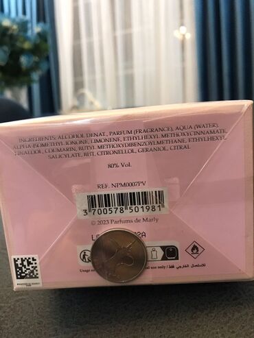 - Tərkib (etiketdən): Alcohol Denat., Parfum (Fragrance), Aqua (Water), Alpha-Isomethyl Ionone, Limonene, Ethylhexyl Methoxycinnamate, Linalool, Coumarin, Butyl Methoxydibenzoylmethane, Ethylhexyl Salicylate, BHT, Citronellol, Geraniol, Citral