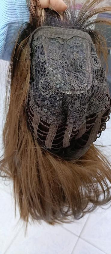 Süni saçdan hazırlanmış parik satılır. İki rəngli ombre effektli: üst hissə tünd qəhvəyi, uclar karamellə açıq qəhvəyi. Düz, çiyin səviyyəsinə yaxın orta uzunluq. İç hissəsi nəfəsalan tor əsasda yığılmışdır, elastik lentlər sayəsində başa rahat oturur. Gündəlik istifadə üçün uyğundur, forması asanlıqla düzləndirilir və daraqla rahat açılır. Qiymət: 20 AZN.