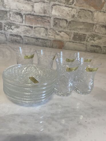 - Komplekt: 6 ədəd armudu stəkan + 6 ədəd şüşə çay boşqabı (nistər).
