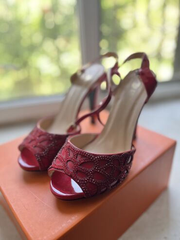 İkinci əl ayaqqabı, az geyinilib. 39 razmer. Hündürlüyü 8sm. (Tünd qırmızı rəng). barter mümkündür.