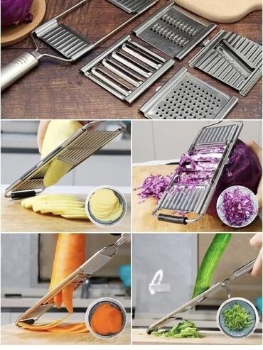 Paslanmayan poladdan çoxfunksiyalı rəndə və doğrayıcı seti.Многофункциональная терка Гратер с 4 насадками из не ржавеющей стали.