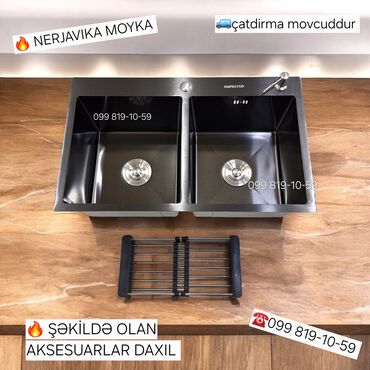 İki bölməli paslanmayan poladdan (nerjavika) mətbəx moykası dəsti