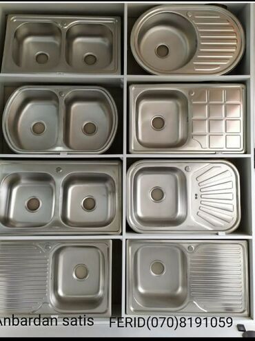 Mətbəx üçün paslanmayan poladdan müxtəlif formalı və ölçülü əl-üz yuyan/leykalar.
