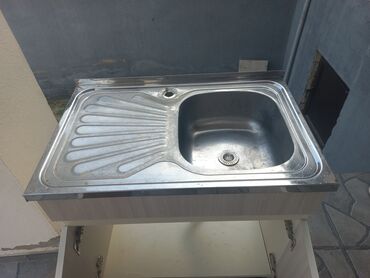 Satılır: - Mətbəx moyka şkafı – metal moykalı, iki qapılı alt dolab, üst hissədə paslanmayan polad sink. Üstündə “10 AZN moyka şkaf” qeyd olunub. - Uzun taxta nərdivan – həyət və dam işləri üçün, ...