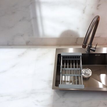 - Krana uyğun hazır deşik və yan tərəfdə sabun dispenseri üçün yer