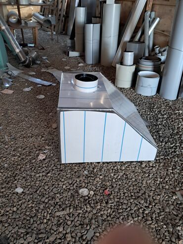 - Davlumbaz və baca boruları müxtəlif diametr və ölçülərdə hazırlanır; asma zəncirlə tavan montajı və ya stasionar karkas üzərində quraşdırma variantları