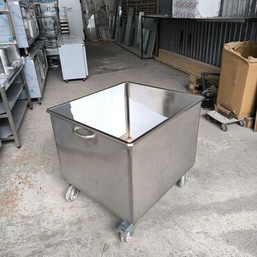 - Paslanmayan polad arabası: dərin, kvadrat formalı konteyner; hər iki yanda daşıma tutacaqları; şok dayanıqlı fırlanan təkərlər; iç səth hamar və təmizlənməsi asan; iri həcmli xammalın, qabların və tullantının daşınması üçün uyğundur.