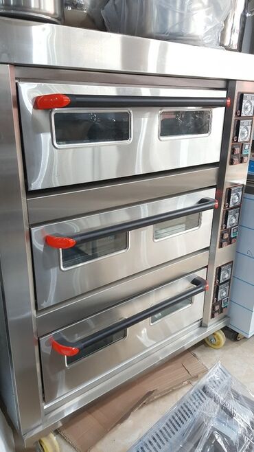 - 3 laylı elektrik/qaaz tipli bişirmə sobası bloku: hər kamerada ayrı idarəetmə paneli, temperatur tənzimləyiciləri və nəzarət pəncərəsi; istilik izolyasiyalı qapılar; eyni anda böyük həcmdə bulkalar, pizzalar və şirniyyatlar bişirməyə imkan verir.