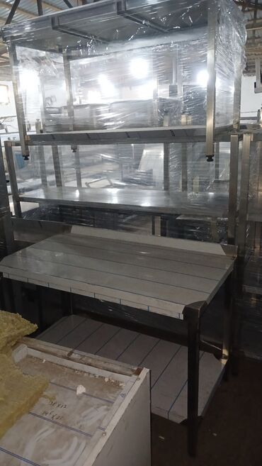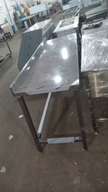 - Paslanmayan polad iş masaları: yan bortlu, möhkəm karkas, alt rəf ilə; gigiyenik və təmizlənməsi asan səth.
