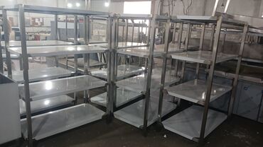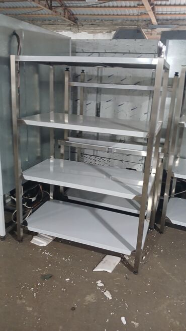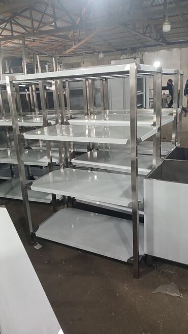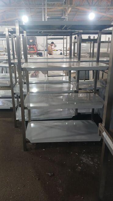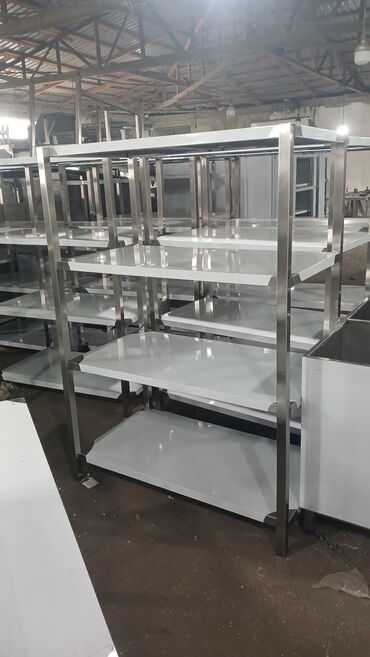 Paslanmayan poladdan sənaye rəfi - Material: AISI 304/201 paslanmayan polad karkas, hamar metal raf səthləri - Konstruksiya: 4 mərtəbəli, möhkəm profil çərçivə, qaynaqla bərkidilmiş - Ölçü: emalat...