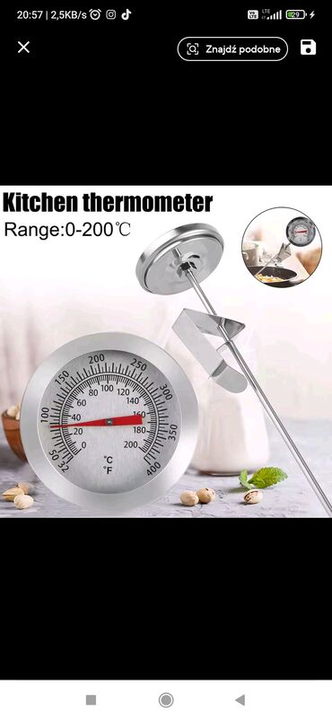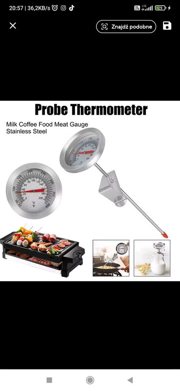 Kolbasa/ət, süd və istənilən qida məhsullarının daxili (içinin) temperaturunu ölçmək üçün iynəli, nerkavik , mexaniki termometr -