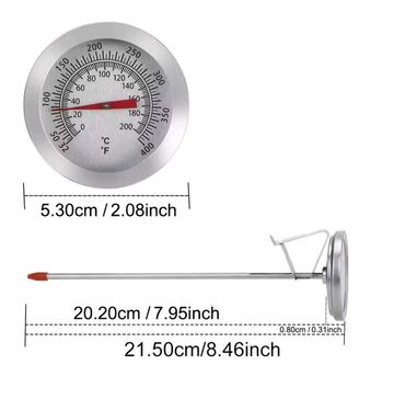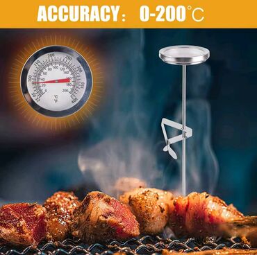 Belə ki, hər məhsulun öz bişmə dərəcəsi olur və ətin (məhsulun) bişmə dərəcəsini bilmək üçün məhsulun içinə termometrin iynəsi yerləşdirilir, sizə lazım olan tempratura çatdıqda məhsulun bişdiyini bilirsiz. Batareyasızdır. Mexanikidir. Məhsul termometrin asan bərkidilməsi üçün paslanmayan poladdan sıxacla təchiz edilmişdir. Belə ki, istənilən yerə sancaraq , bərkitmək olur. Məhsulun parametrləri aşağıdakı kimidir: