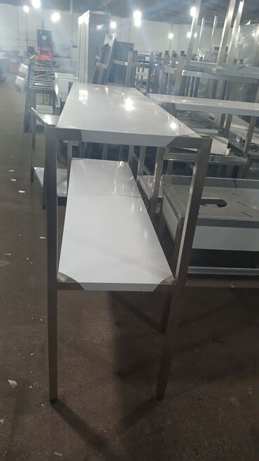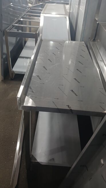 Paslanmayan poladdan (inox) peşəkar mətbəx avadanlıqları - İş masaları: düz səthli və arxa bordürlü modellər. Geniş kəsim-sərf səthi, möhkəm karkas, dayaqlarda sərtlik üçün ara bağlayıcılar. - Rəf...