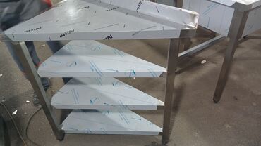 - Künc üçün üçrəfli servis masası: üçbucaq rəflər, tənzimlənən dayaqlar, künc sahəni səmərəli istifadə etməyə imkan verir.