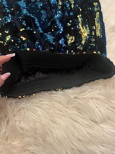 - Parça: Qara əsas üzərində ikitərəfli/çoxrəngli payetlər (mavi, qızılı, mis tonlarında parıltı)