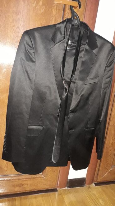 Klassik qara kişi kostyumu – şalvar və pencək dəsti. Xüsusiyyətlər: - Rəng: dərin qara - Kəsim: iki düyməli, tək cərgə; klassik geniş dovşancıq yaxalıq (notch lapel) - Ciblər: iki ədəd qapaqlı yan...