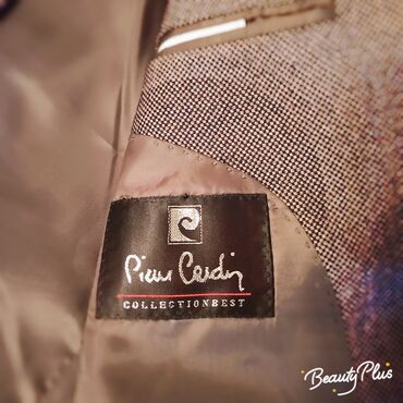 Kişi kostyumu – iki parçalı - Rəng: tünd boz, incə xətli (micro-check/çizgili) naxış - Model: 2 düyməli klassik pencək, dar krujevalı (notch) yaxa - Pencəkdə: sinə cibinin üstü (bilet cibi görünüş...