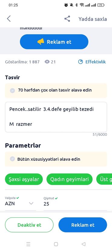 Pencek satilir M razmer.qiymetde endirim.oldu. 20 man