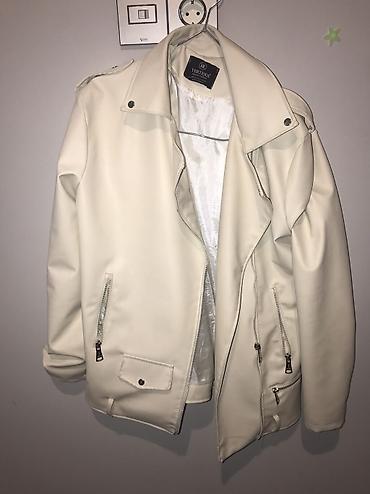 Ağ rəngli qadın motosiklet üslublu gödəkçə - Brend: MEECY (etiketdə) - Material: süni dəri görünüşlü parça, atlas tipli astar - Rəng: qar kimi ağ - Dizayn: asimmetrik ön fermuar, geniş qatlana bil...