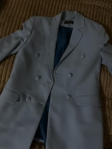 O’DRESSY qadın blezeri - Rəng: açıq boz–mavi (dusty blue), yüngül teksturalı parça - Model: ikiqat düyməli (double-breasted) - Ölçü: X (etiketdə) - Dizayn: iti, həcimli döşəklər və kəskin qatlarda...