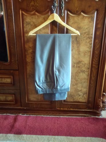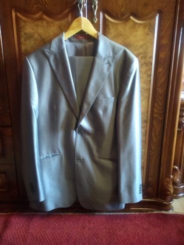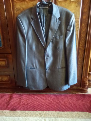 Geyim sifarişlə yeni alınıb gətirilib və sadəcə 44-0 ölçüsü uyğun gəlmədiyindən satılır. İki parçalı kişi kostyumu – qrafit boz rəngdə - Üst: ikicərgəli düymələmə, geniş haşiyəli (peak lapel) yaxa,...