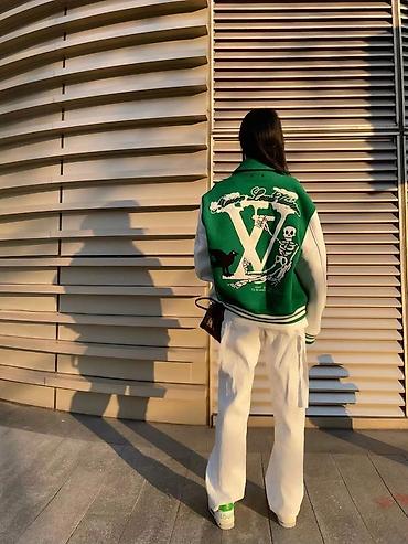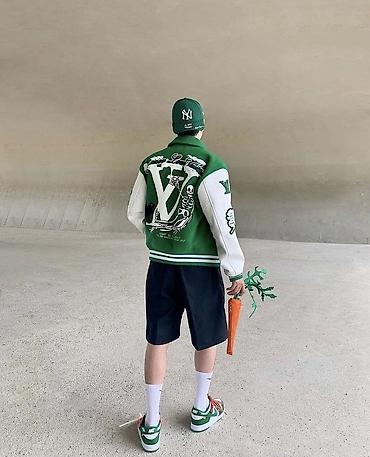 Louis Vuitton Gödəkcəsi (varsity) üslubunda qrafik naxışlı jaket.