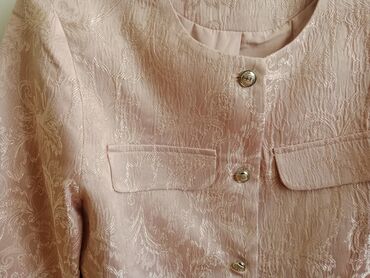 Ünvandan götürməZərif çiçək naxışlı, dairəvi yaxalı, açıq çəhrayı rəngli jaket. Xüsusi günlərdə və ya işgüzar görüşlərdə geyinmək üçün idealdır.