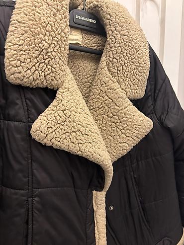 Süni dəri şerpa astarlı qış gödəkçə - Rəng: tünd qara (xarici hissə), krem rəngli qalın şerpa astar və yaxalıq - Model: qısa kəsim, “aviator”/shearling tərzi - Bağlanma: ön tərəfdən metal işıq fer...