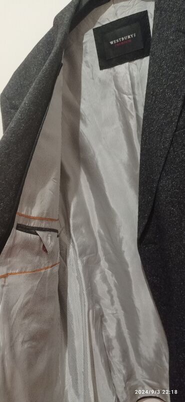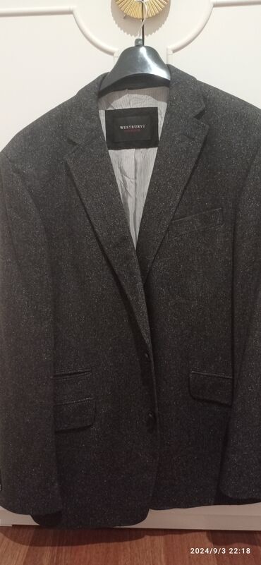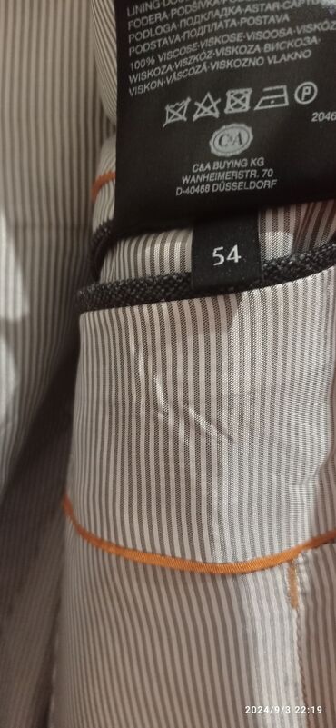 Cacharel kişi kostyumu – tünd göy rəngdə, klassik dizayn. - Brend: Cacharel (etiketdə göstərilib) - Dəst: gödəkçə + şalvar - Parça tərkibi: 100% yun (gödəkçə) – etiket məlumatına əsasən; astar 100...