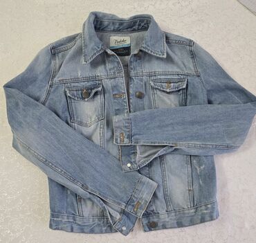 ZARA qadın cins gödəkçəsi - Model: qısa (cropped) denim gödəkçə - Rəng: açıq/mavi yuyulmuş denim - Dizayn: intentional cırıq və yırtıq detalları, xam/saçaqlı ətək kənarı - Bağlanma: metal düymələr...