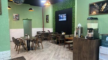 Icarə üçün tam təchizatlı kiçik kafe/iaşə obyekti, çay evi - Tam şüşə ön fasad və vitrin qapı, içəridə parlaq mərmər tipli döşəmə - LED işıqlandırma, kondisioner - 6+ masa və metal karkaslı, toxum...