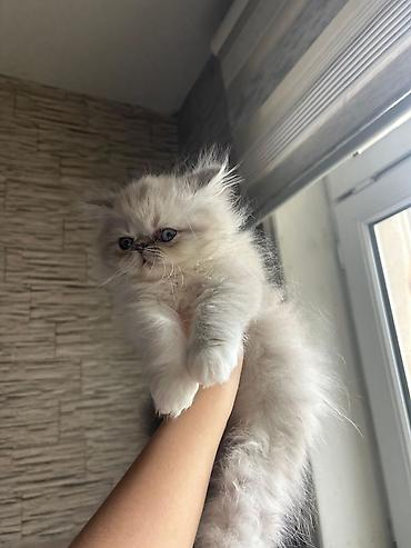Cins: Persian (saqqallı, yastı burunlu tip) Rəng: Qızılı/şaftalı “golden” kölgəli Yaş: Balaca pişik balası Cinsiyyət: (şəkillərdə mavi lentli) Xəz: Uzun, sıx və ipək kimi; gündəlik daraqla asanlıql...