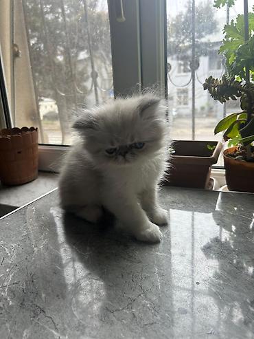 Cins: uzun tüklü, yastı burunlu dekorativ pişik balası (Persian tip) Rəng: krem-ağ tüklər, quyruqda və üz nahiyəsində boz-krem kölgələr Gözlər: iri, açıq mavi Xüsusiyyətlər: - Həddən artıq tüklü, y...