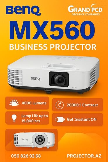 BenQ MX560 Business Projector - Parlaqlıq: 4000 lumens – işıqlı otaqlarda belə aydın görüntü - Kontrast nisbəti: 20,000:1 – dərin qara və canlı rənglər - Lampa ömrü: 15,000 saata qədər - Instant O...
